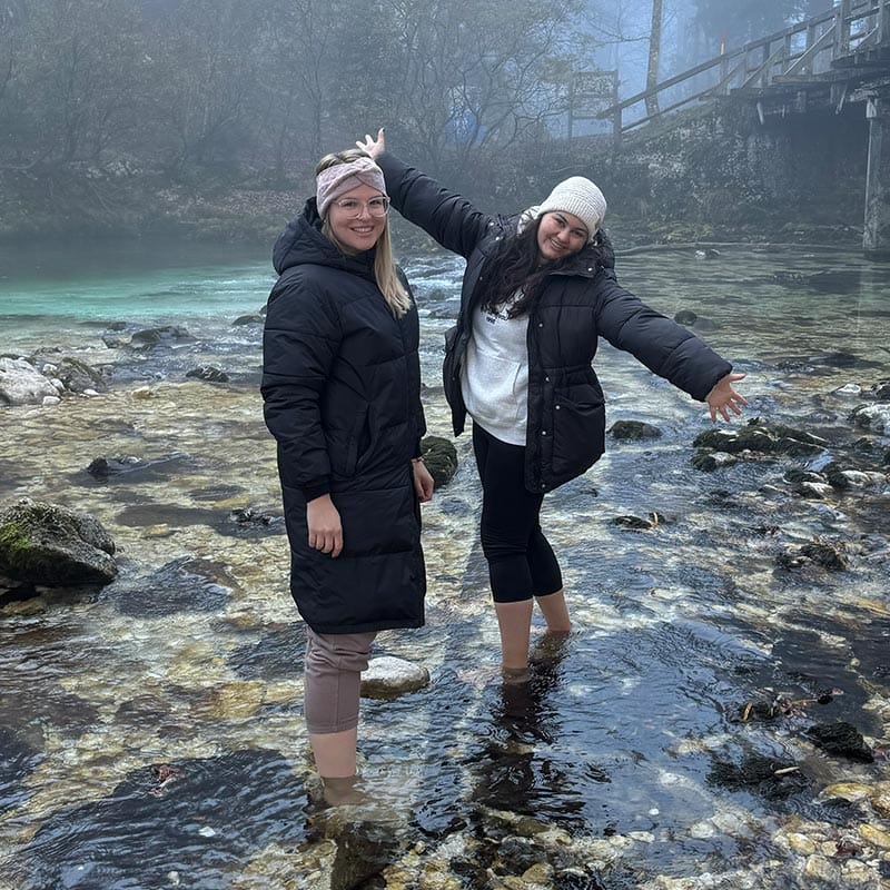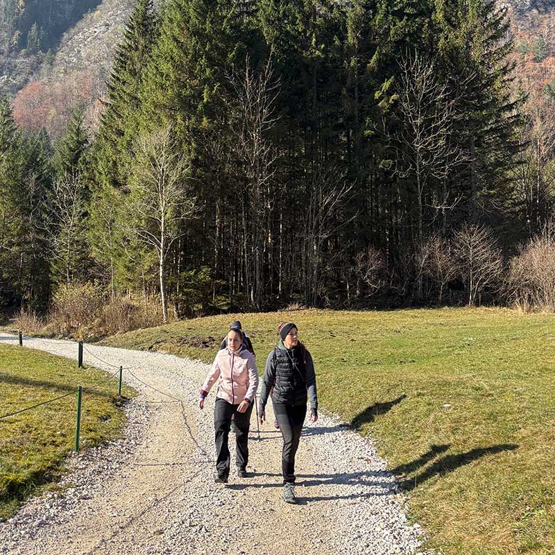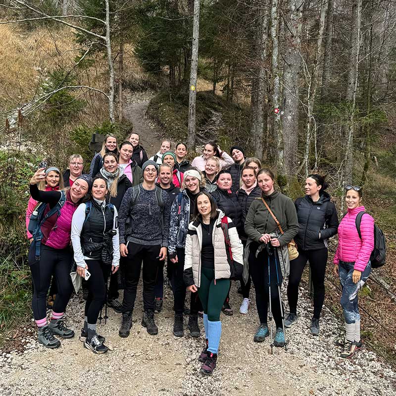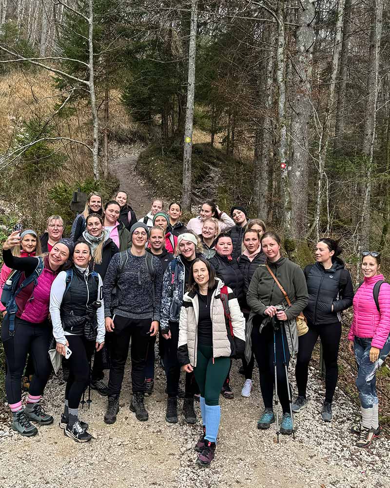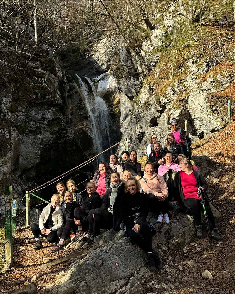 Naslednje jutro se je začelo s pilatesom, ki mu je sledil pohod po slikovitih poteh Bohinja. Udeleženke so uživale v svežem gorskem zraku in občudovale veličastne razglede. Pot je vodila skozi Korita Mostnice vse do slapa, medtem ko so se nekatere odpravile še višje, vse do Uskovnice.